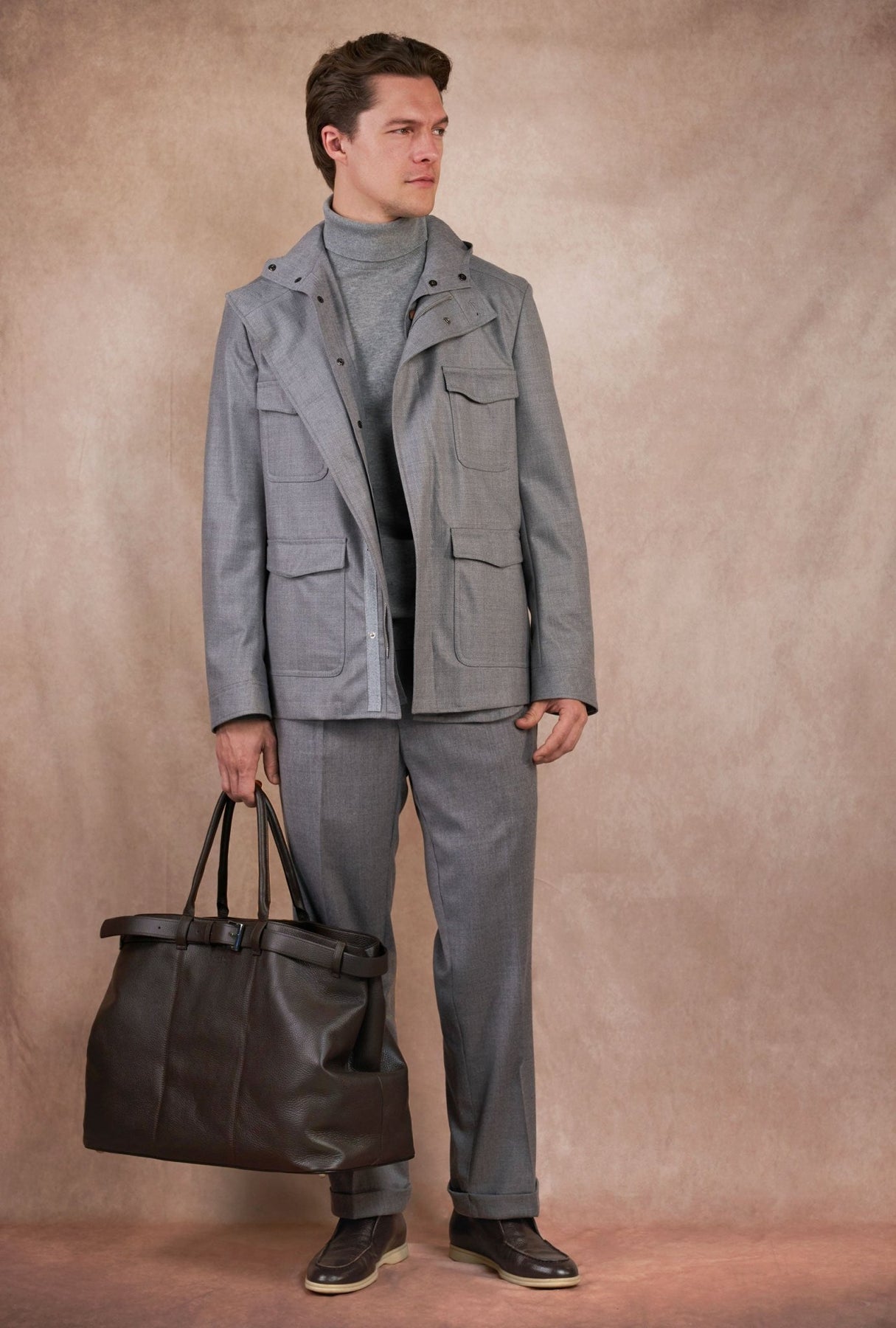 Hecha en Italia con 100% piel, ofrece una textura firme y resistente que mejora con el uso, desarrollando una pátina natural que le da carácter con el paso del tiempo. La estructura de la bolsa mantiene una silueta clásica y ordenada, ideal para quienes prefieren un estilo pulcro y sofisticado al momento de viajar.