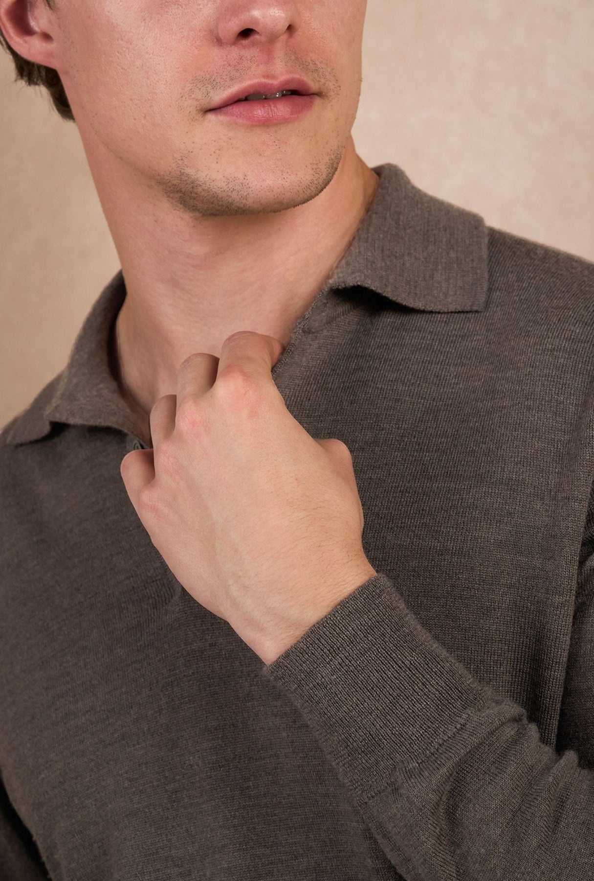 POLO LANA MERINO TAUPE AW2502 - H&F - PLAYERA POLO - POLO LANA MERINO TAUPE AW2502 - HFPOAW2502CH - CH -